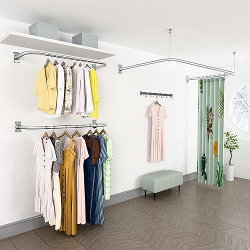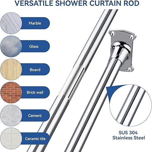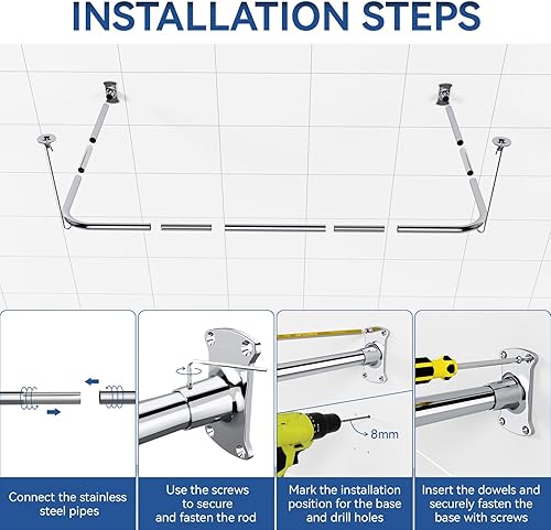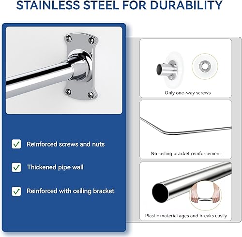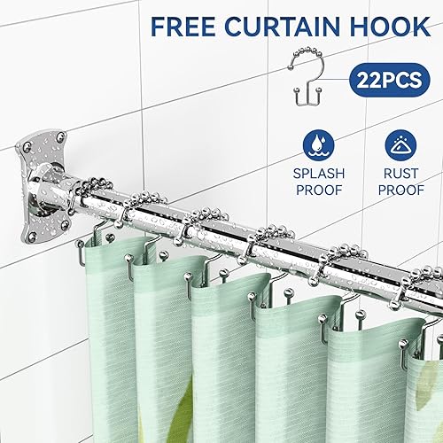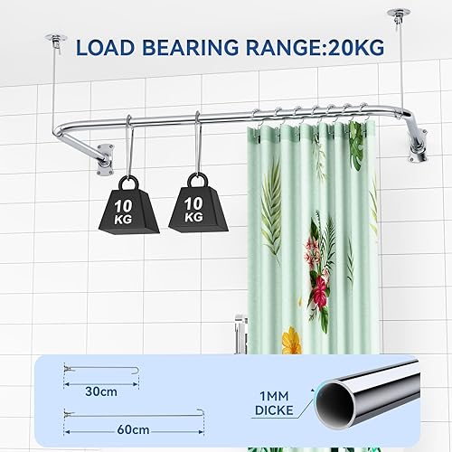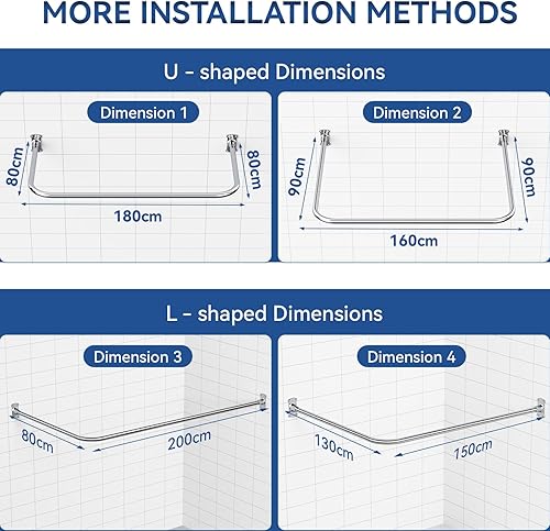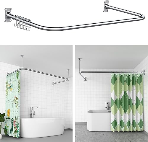 KULACO Tringle à rideau de douche en forme de U/L [80-90]×[160-180] ×[80-90] Tringle de douche d'angle en acier inoxydable SUS304 avec support de plafond et 22 anneaux de rideau de douche pour