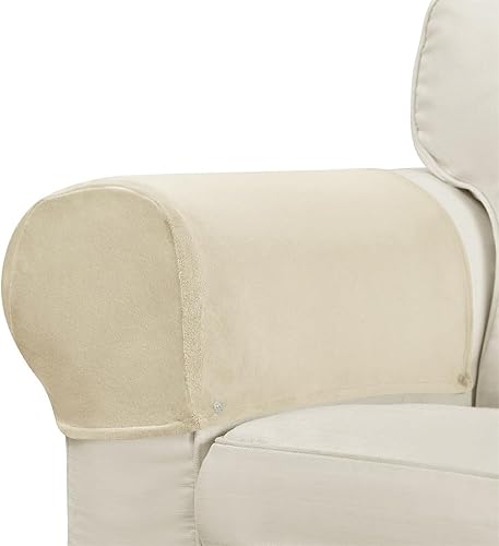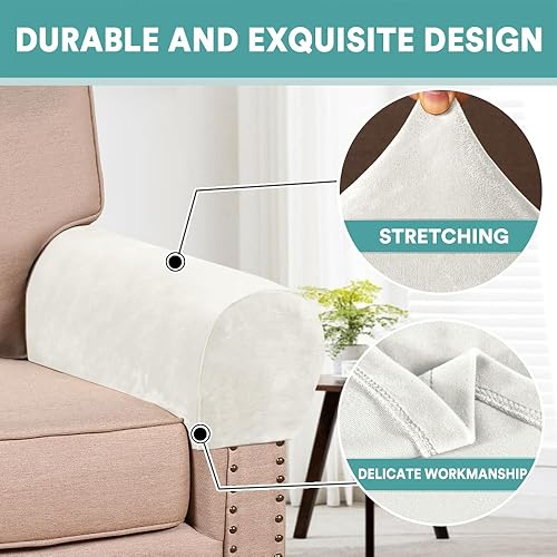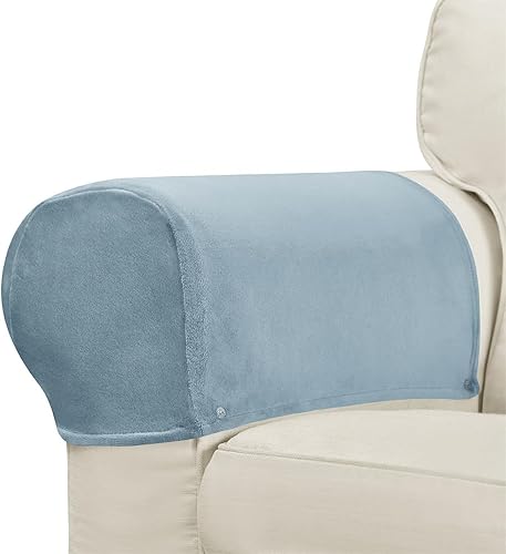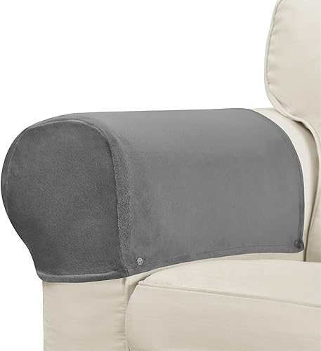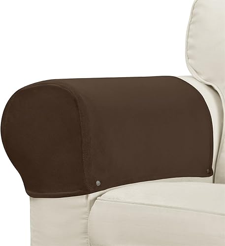 Hearda Velours Lot de 2 Housse Accoudoir Canapé, Antidérapant Housse Accoudoir Fauteuil Élastiques, Protege Extensible Accoudoir Canapé, pour Fauteuils Inclinable, Canapé (Café)