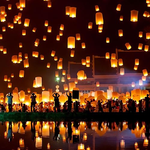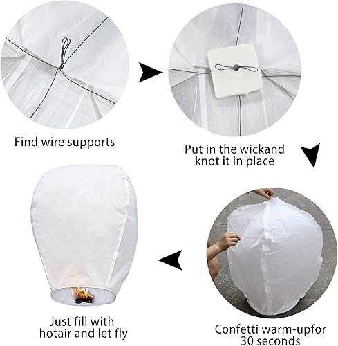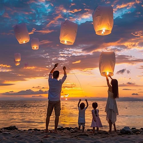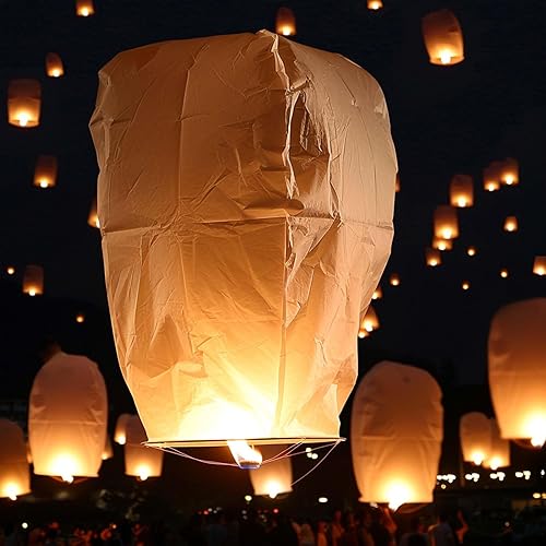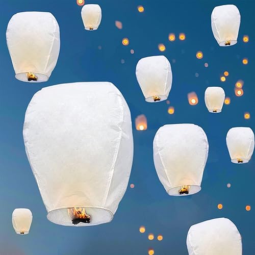 VAIIEYO Lot de 10 lanternes Célestes Chinoises, Lanterne Chinoise Volante, Lanternes Volantes en Papier, célestes Souhaitant, 100% biodégradable, Utilisées pour Un Anniversaire, Un Mariage, Une fête