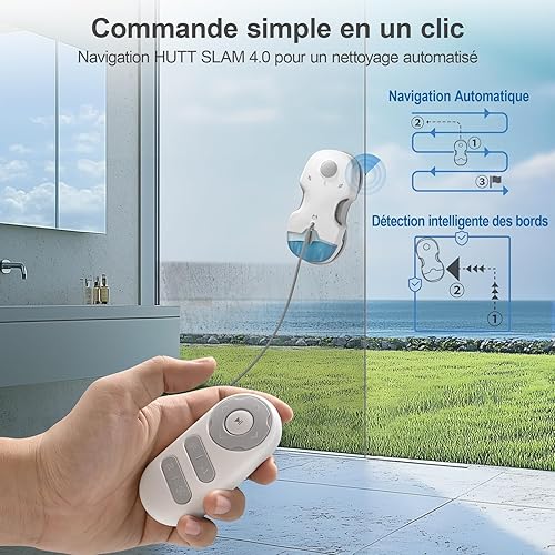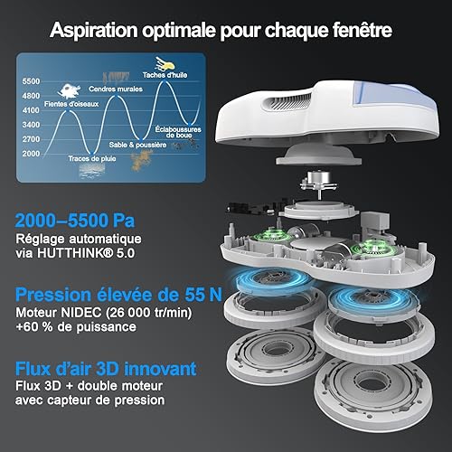 HUTT S7 Robot Nettoyeur de Vitres 5500Pa, Robot Laveur de Vitre avec Gicler l'eau Automatique, Châssis 3D Flottant, Système de Protection Multiples, Télécommande