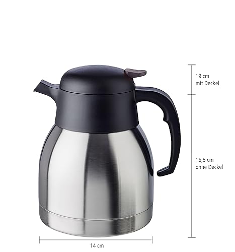 APS pichet à vide 'Classic', pichet à café avec bouchon à vis, Ø 14 cm, H : 19 cm, acier inoxydable à double paroi, pour boissons chaudes et froides, ne passe pas au lave-vaisselle, 8 tasses/1,0 litre