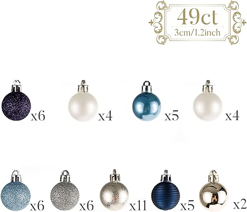 Valery Madelyn 49pcs 3cm Boules de Noël, Ornements Incassables, Blanc, d'argent et d'or, Décoration Essentielle pour Le Sapin de Noël