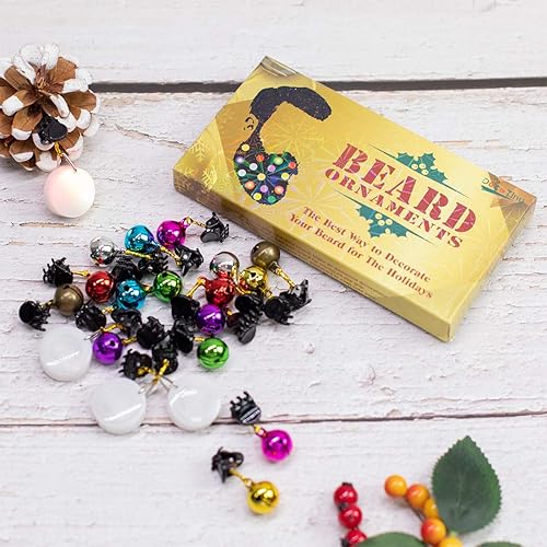 DecoTiny Lot de 20 Ornements de Barbe, 16 Cloches de Noël Tintantes, 4 Boules de Noël Décoratives Lumineuses, Excellent Cadeau de Noël, de Réveillon et de Nouvel an.