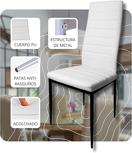 HOME DESIGN & CONFORT Lot de 4 chaises de salle à manger tapissées - Chaises de cuisine tapissées - Noir, 4