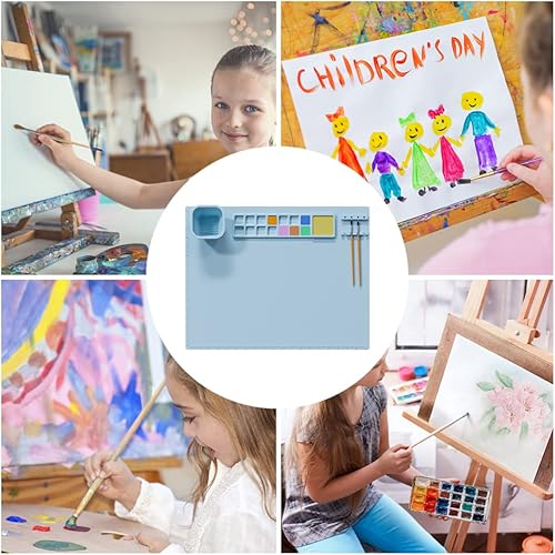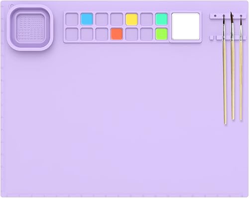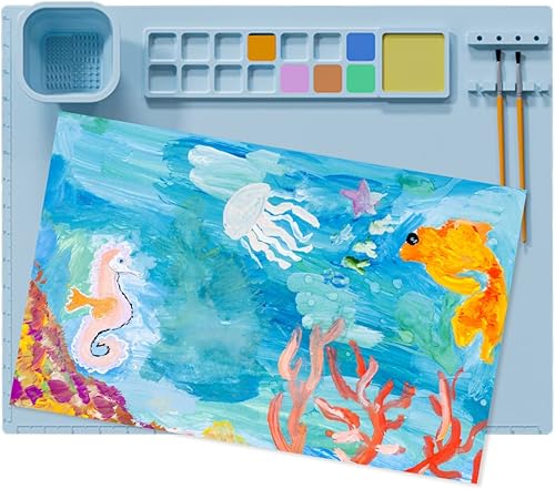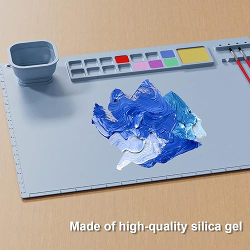 Tapis de peinture en silicone pour enfants, 50,8 x 40,6 cm, réutilisable avec porte-gobelet, feuille antiadhésive pour travaux manuels, peinture à l'aquarelle, découpe, création artistique, argile et