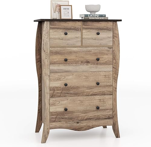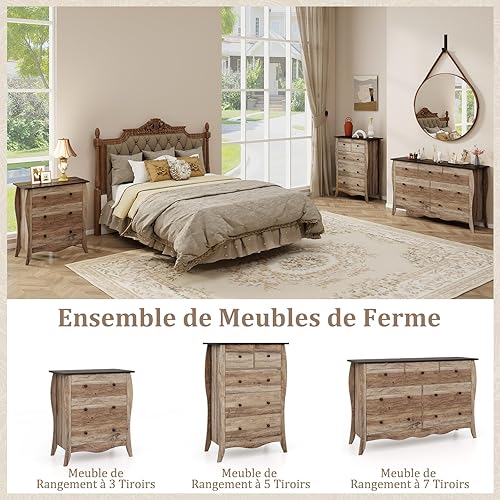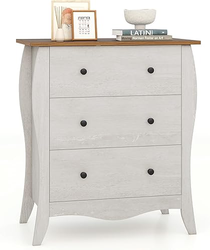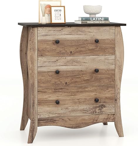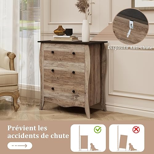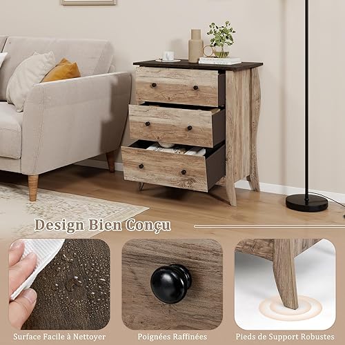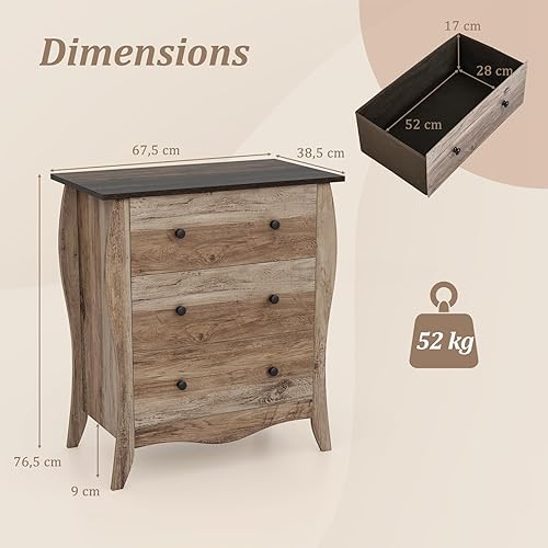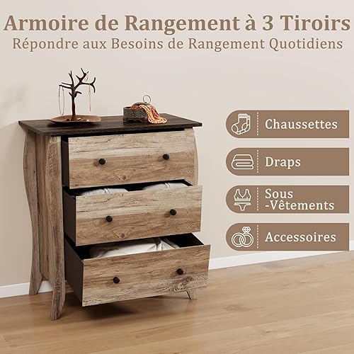 COSTWAY Commode Chambre, Commode 3 Tiroirs en Tissu Pliable, Design Incurvé, Plateau en Bois, Meuble de Rangement Chambre Rustique pour Chambre d'enfant, Salon (Marron,3 tiroirs)