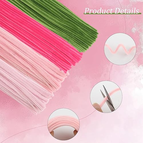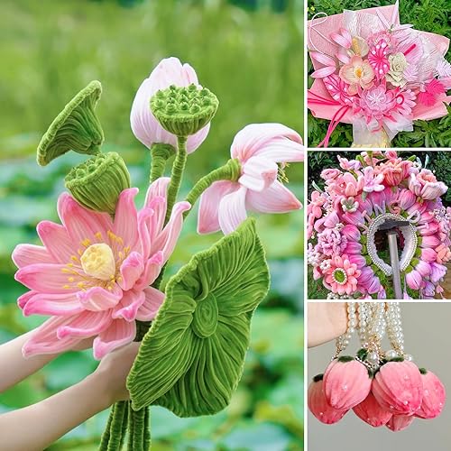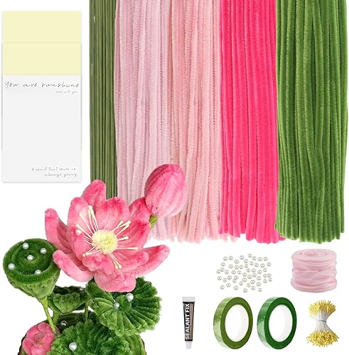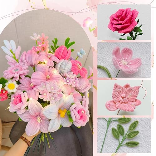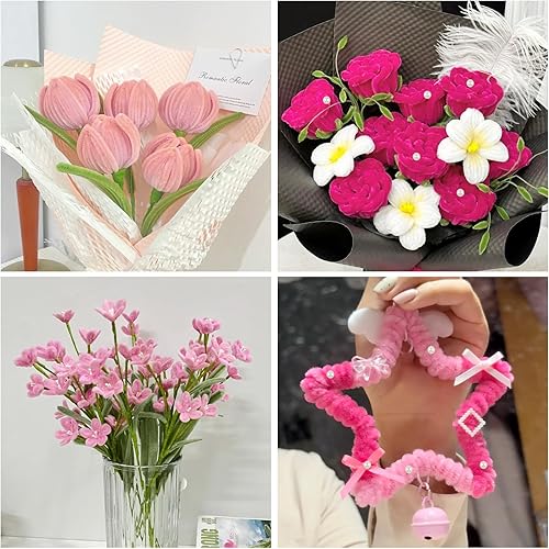 400 Kit Cure Pipes(4 Couleurs) +200 Noyau Fleur +30 Tige Fleur Artificielle +2 Ruban Adhésif +3 Papier D'emballage + 50 Perle Demi Ronde + 1Colle, Fil Chenille Bouquet Tulipes DIY Fleurs Décoration