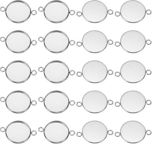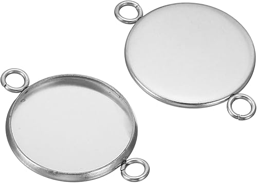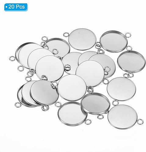 PATIKIL Pendentif Plateaux, 20 Paquets 316 Inox Acier 16mm Rond Lunette Plateaux Pendentif Socle Cabochons Plateaux avec 2 Bagues pour Photo Pendentif joyau Fabrication, Argent Ton