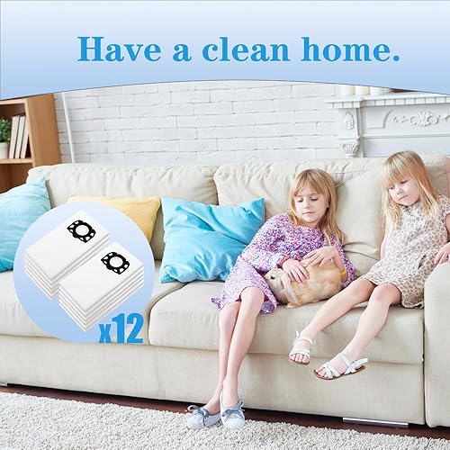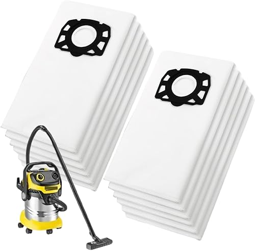 KFI 357 Lot de 12 sacs d'aspirateur pour Kärcher WD3/MV3//KWD1/KWD2/KWD3/SE4001/SE4002, accessoires Kärcher, sacs filtrants en non-tissé pour aspirateur eau et poussière avec disque en plastique