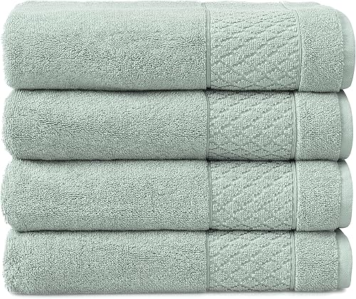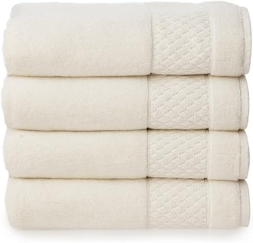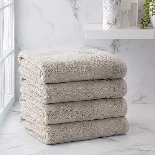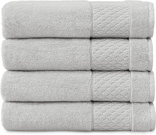 Welhome Hudson Lot de 4 Serviettes Grises | 100% Pur Coton Bio | Durables et Douces | Serviettes de Bain pelucheuses pour hôtel et Spa | Fabriquées de manière Durable | Lourdes | Super absorbantes |