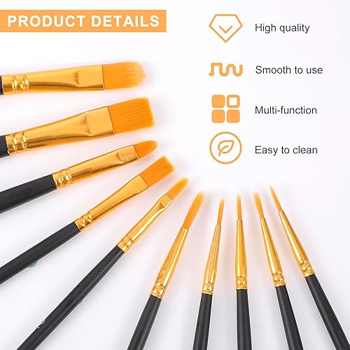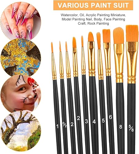 Piriuuo Lot de 10 pinceaux d'artiste de qualité supérieure - Pinceaux de maquillage pour enfants - Petits pinceaux d'artiste - Art corporel - Peinture acrylique - Pour corps, visage, roches, toile