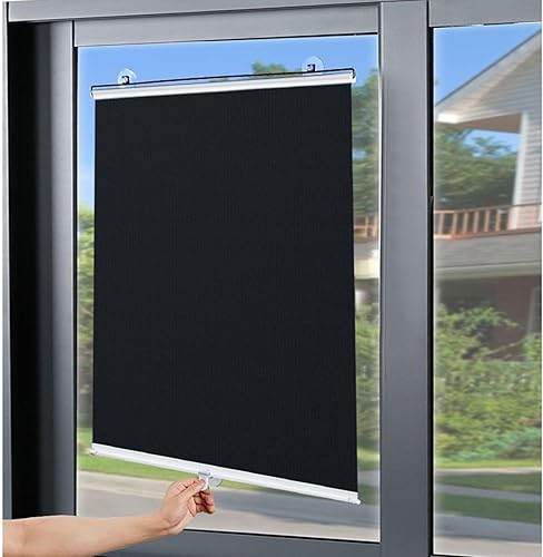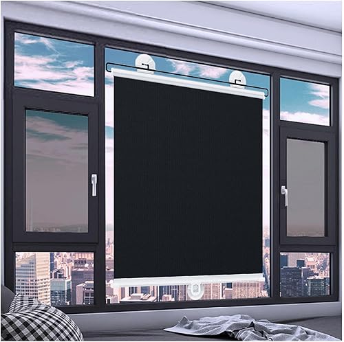 Stores enrouleurs Pare-Soleil sans perçage, Stores enrouleurs occultants à Ventouse, Stores enrouleurs Thermiques pour fenêtre, Rideaux occultants 30/45/50/65/70 cm, Noir - 45 x 160 cm/18 x