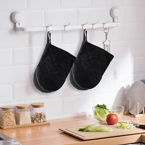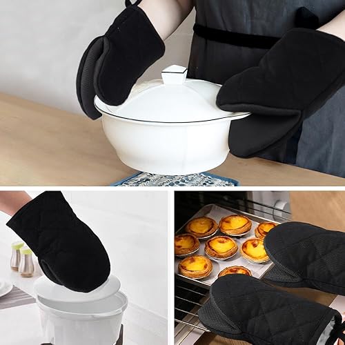 Lot de 2 Gant Four, Gant Four Anti Chaleur Gants de Cuisine Gant Anti Chaleur en Coton Extra Longs Gants de Cuisine Antidérapants pour Pâtisserie Cuisson Grillage à Micro-Ondes