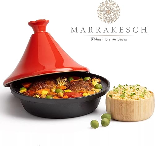 Marrakech Tajine Marrakech Marracesch Marmite à tajine en fonte 2 l pour 4 à 6 personnes Compatible induction et tous types de plaques de cuisson