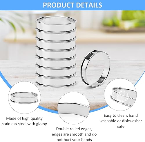 ZMDMAH Cercle a Patisserie 8 Pièces Anneaux à gâteau Moules à crêpes en Acier Inoxydable Cercle Patisserie Cercle à Tarte aux œufs Cercle à Muffins pour Crêpes Muffins Tartes Gâteaux