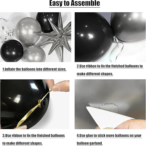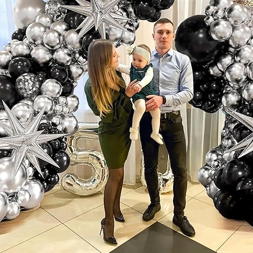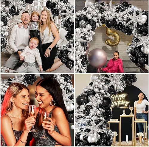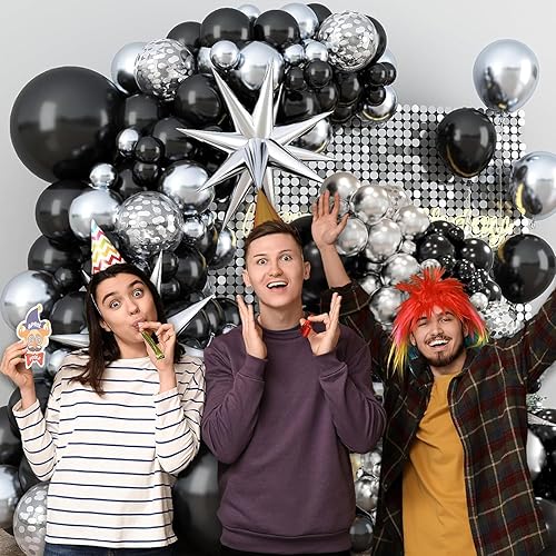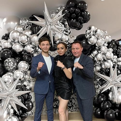 Kit d'arche de ballons noirs et dorés avec ballons en forme d'étoile en aluminium, décorations de fête d'anniversaire, Nouvel An, ballons en latex à confettis pour remise de diplôme – Kit d'arche de