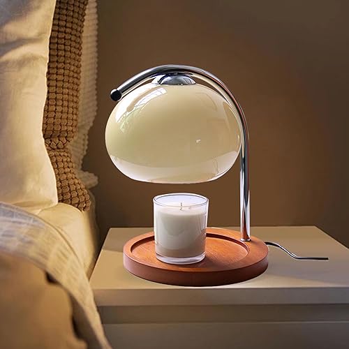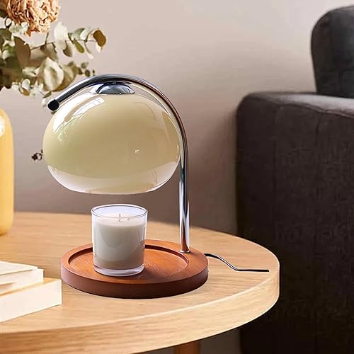 Lampe chauffante pour Bougie de Parfum, Lampe Chauffe-Bougie électrique à minuterie Intelligente, respectueuse du Sommeil. Fondoir à Cire pour Bougie Base en Bois Vintage (Prise
