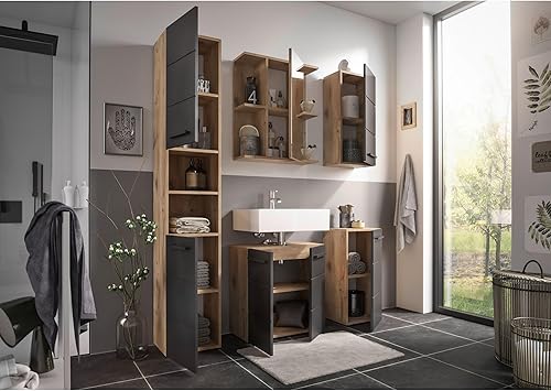 Stella Trading Vista Meuble de Salle de Bain, sous Vasque, Aspect chêne Viking, Vert Roseau, avec Beaucoup d'espace de Rangement, Bois d'ingénierie Plastique, Waschbeckenunterschrank