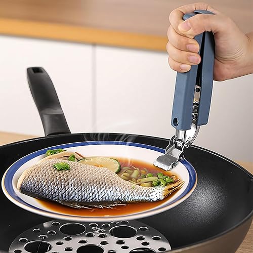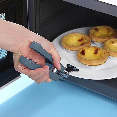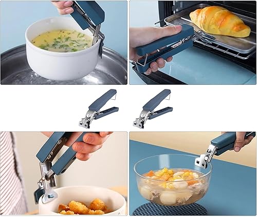 JINJUMEI 2 Pièces Pinces à Pizza en Acier Inoxydable, Four avec Protection en Silicone, Pince de Cuisine Résistant à la Chaleur, Pince à Plaque Antidérapante pour Bol Chaud, Four, Marmites