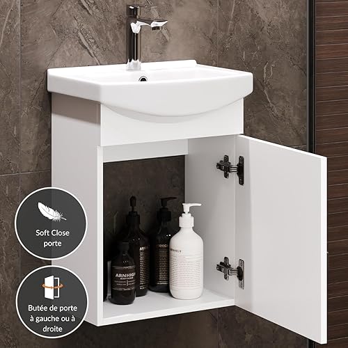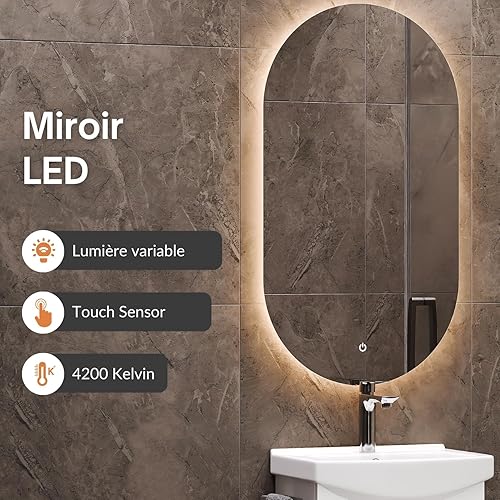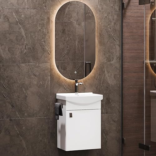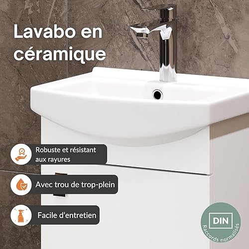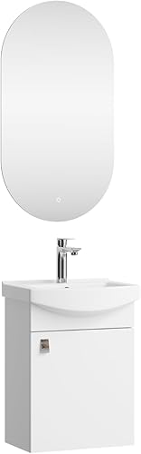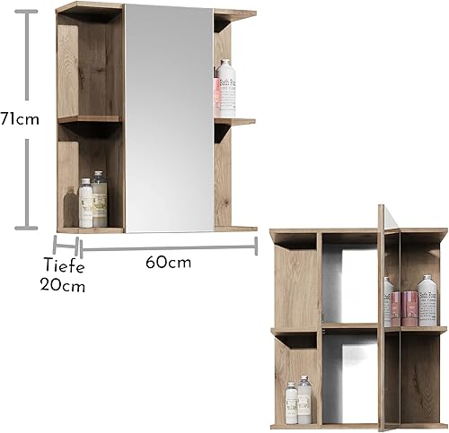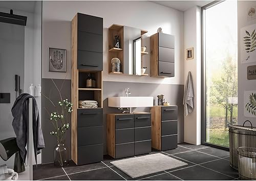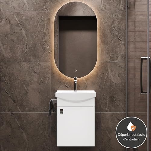 Planetmöbel Ensemble de Meubles de Salle de Bains Lavabo avec Meuble Bas 45 x 60 x 33 cm, Miroir avec éclairage 50 x 90 cm pour Salle de Bains et WC invités, chêne doré