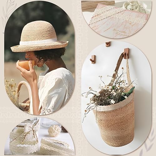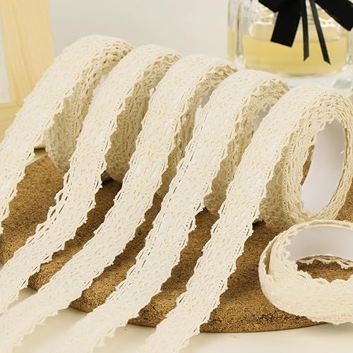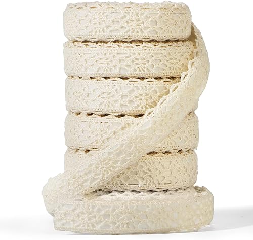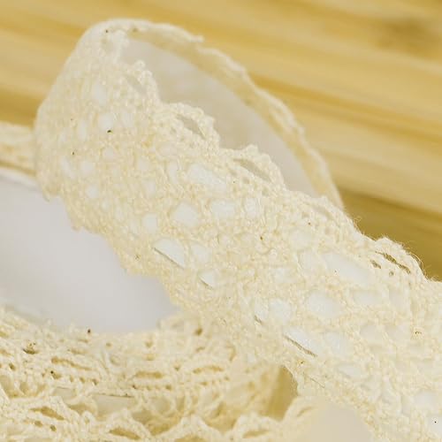 10,9mx1,5cm Ruban Dentelle Auto-adhésif en Coton Dentelle Autocollante Décoration Vintage pour Mariage Bocaux Scrapbooking Bricolage Artisanat (Beige)