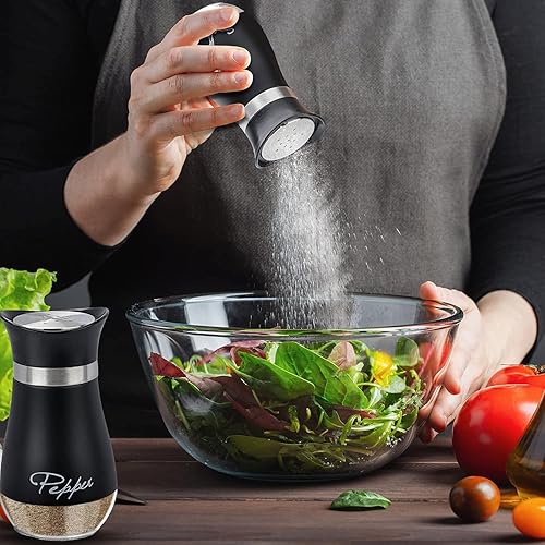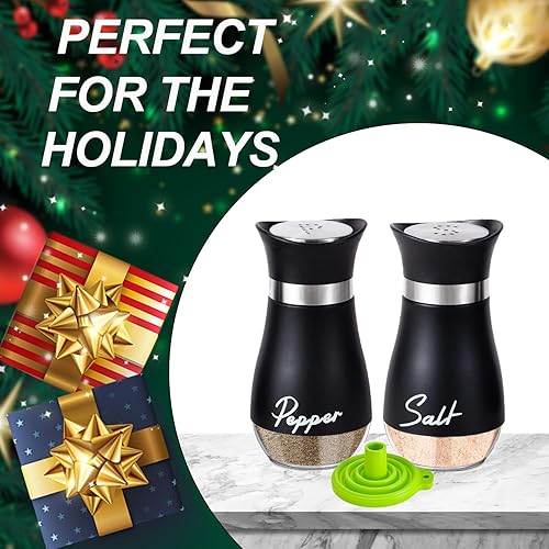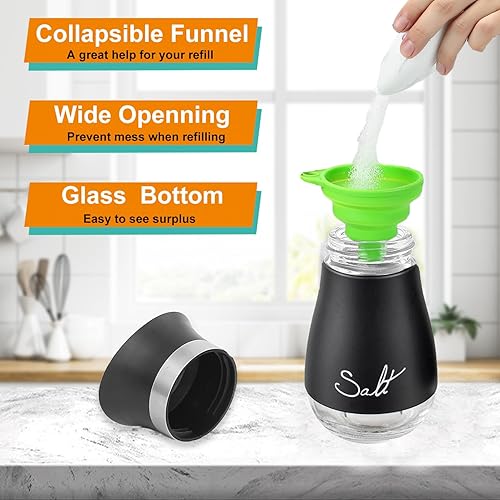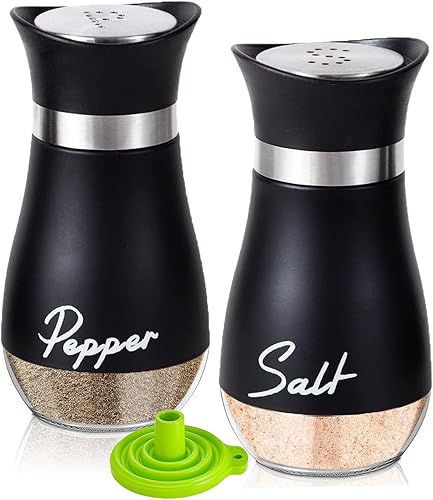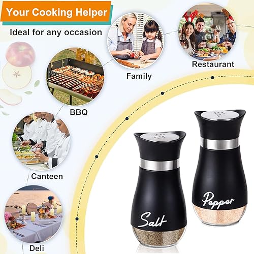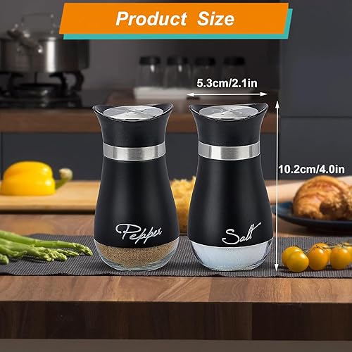 UDQYQ Ensemble salière et poivrière en acier inoxydable avec bouteille en verre, distributeur d'épices, accessoires de cuisine pour la maison, la cuisine, le restaurant, la table à manger (noir)