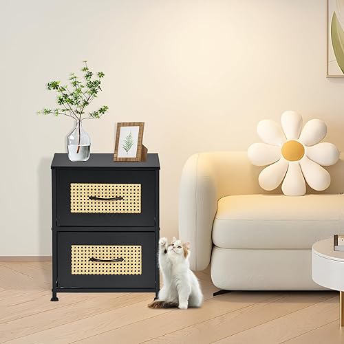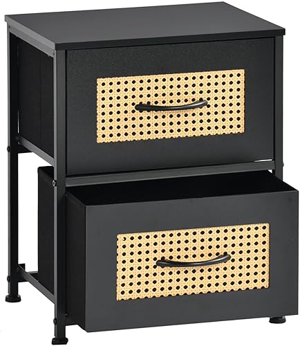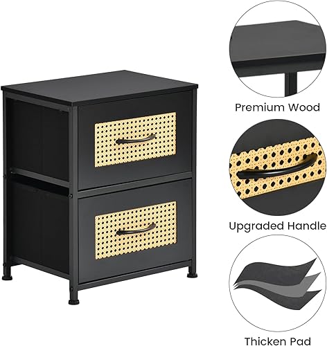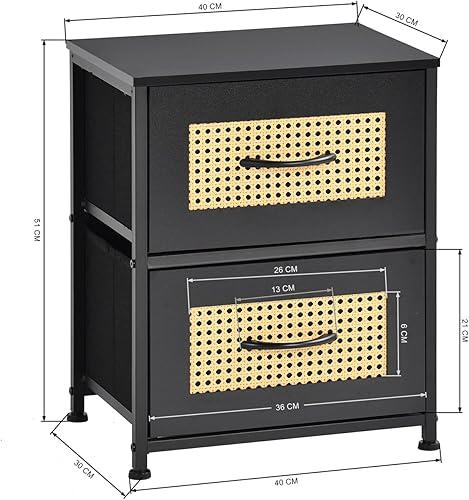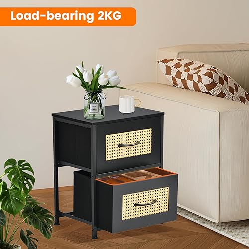 FetiNes Table de Chevet pour Chambre à Coucher, Petite Commode avec 2 Tiron Tissu, Table de s, Table D'appoint, Table de Bois Organisateur pour Obief - Noir