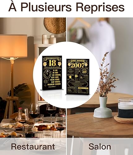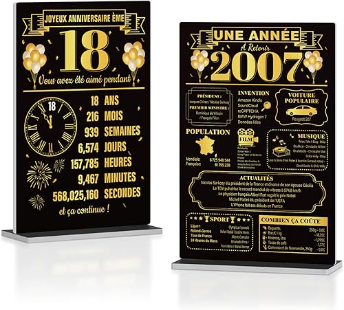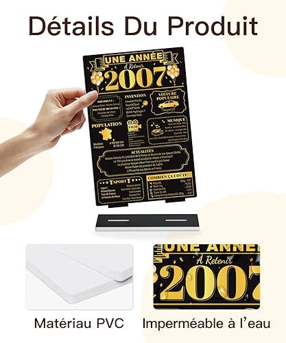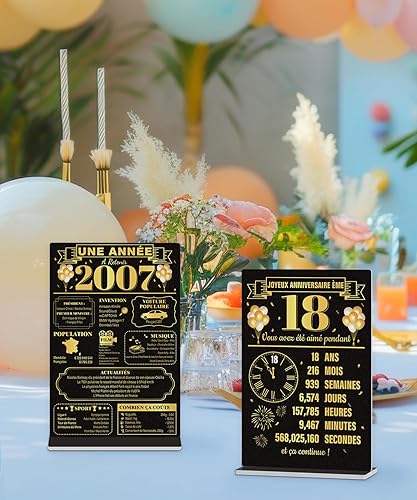 Putuo Decor Lot de 2 Décorations de Table 18 Ans et Année 2007, Plaques Commémoratives en PVC avec Base 15x6cm pour Anniversaire ou Cadeau Souvenir