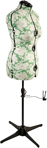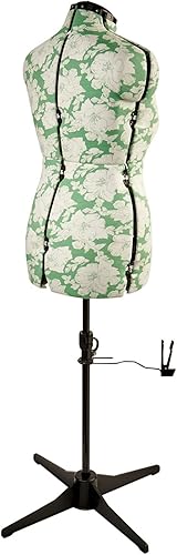 Sewing Online Mannequin Couture Réglable, Motif à Hollyhock Verte | Moyen (M) [Taille EUR 44 à 48]