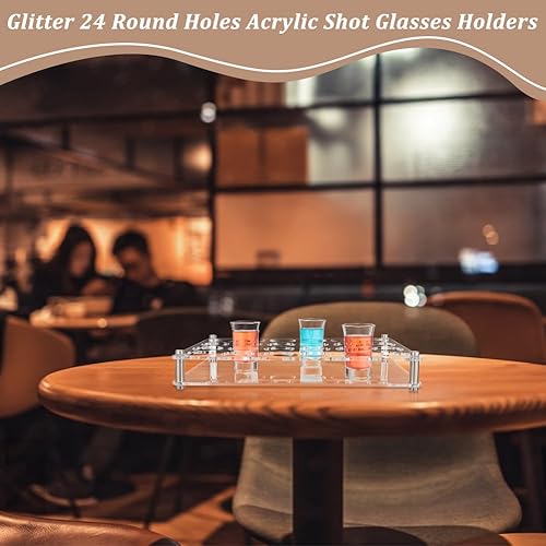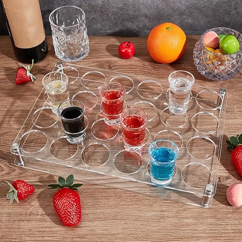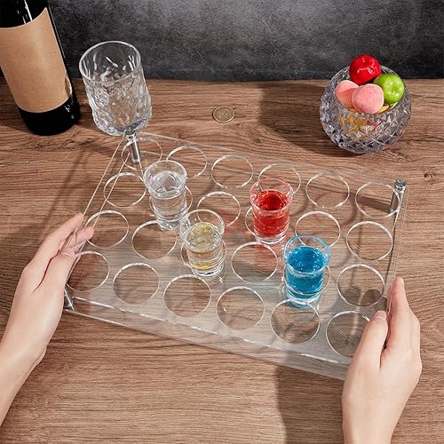 nbeads Support de Plateau pour Verre à Shot à 24 Trou, Organisateur de Verres à Vin en Acrylique Plateaux de Service de Verres à Shot pour Bar Fête Club, Clair, Trous: 4.5cm