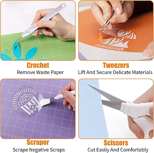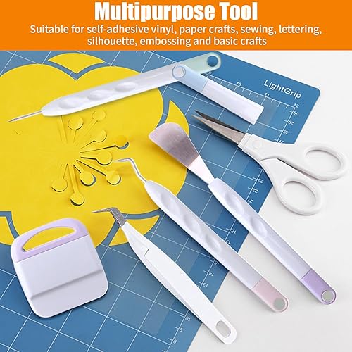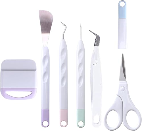 6 Pièces Outils Démarrage Désherbage Vinyle, Accessoires Traceur Base pour Scrapbooking, Lettrage, Camées, Silhouette, Kit Trousse Artisanat Carton con Pincettes, Crochets, Spatules, Ciseaux, Grattoir