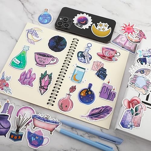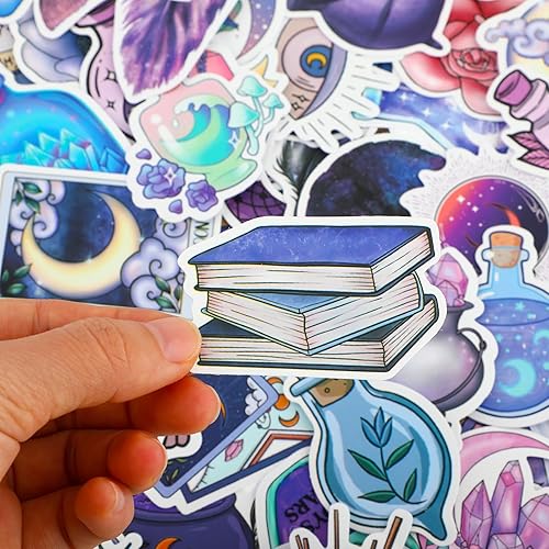 100 Pieces Autocollants Lune Magique de Minuit Fantaisie Esthétique Bouteille D'eau Violet Sorcière Autocollant Vinyle Étanche Graffiti Autocollants pour Scrapbooking Bagages Vélo Skateboard