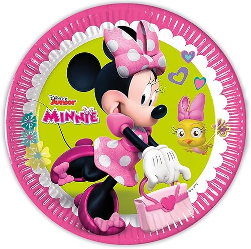 Procos Lot de 8 assiettes Minnie Happy Helpers - 23 cm - En papier mélangé FSC® - Pour fête d'anniversaire d'enfant - 93439