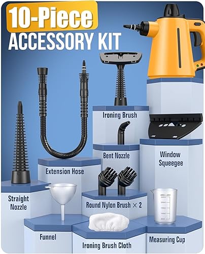 Nettoyeur vapeur avec 10 accessoires, pression de vapeur de 3,5 bar, 380 ml, 1050 W, pour sols, meubles rembourrés, joints et voitures, élimine la saleté et la graisse