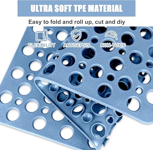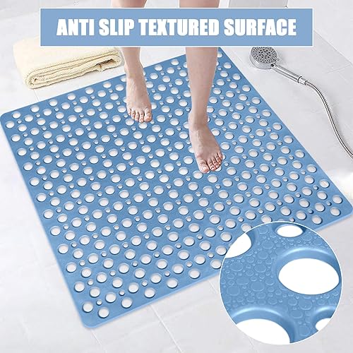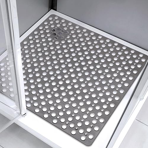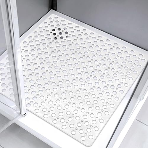 Tapis de douche carré antidérapant et anti-moisissure : 70 x 70 cm Grand tapis de douche pour receveur de douche à l'italienne – Tapis de bain antidérapant en caoutchouc souple pour sol humide –