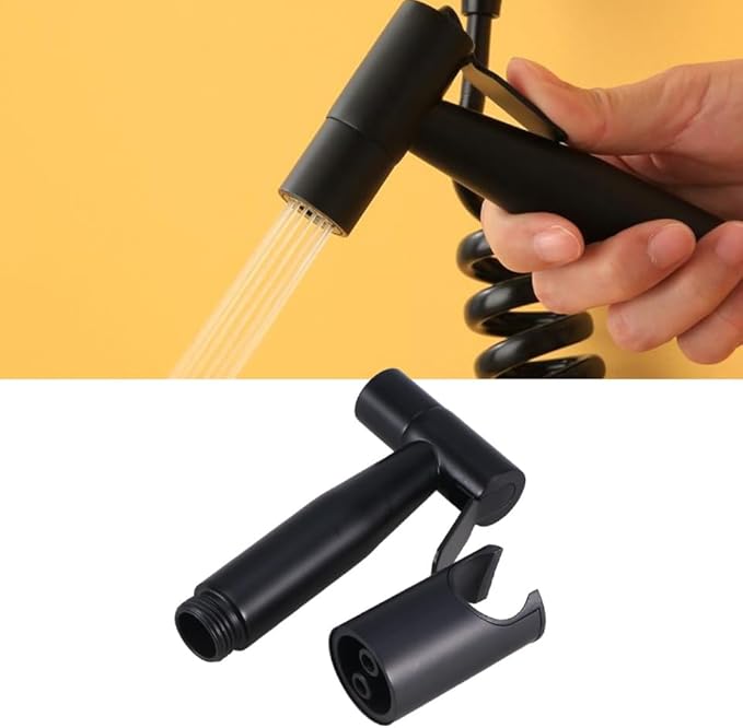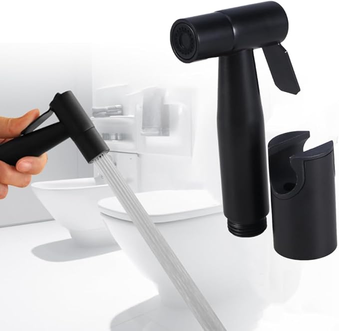 DOITOOL Douchette WC douchette Douchette spray wc toilettes bidet pulvérisateur de bidet de poche en acier inoxydable pulvérisateur de avec support pour salle de bains (noir mat)