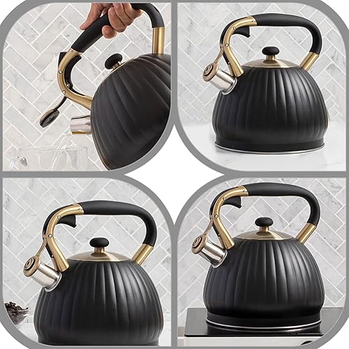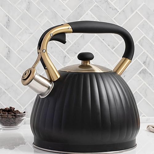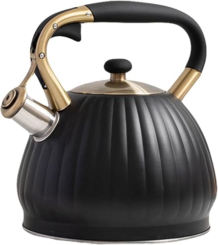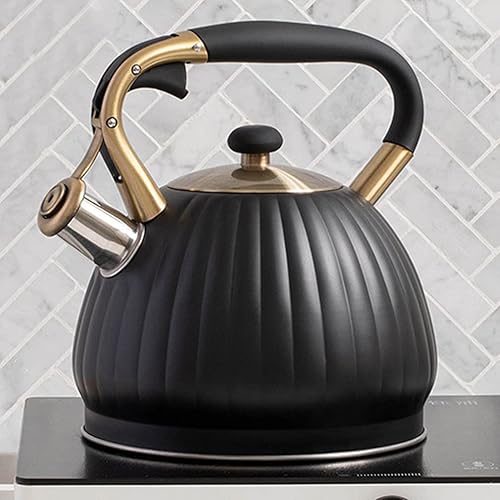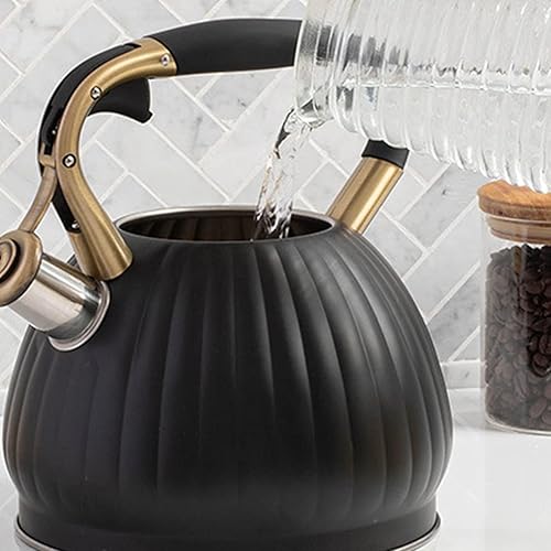 BESTonZON 1pièce Bouilloire Sifflante Inoxydable Noir Avec Poignée Isolante Bouilloire à Thé Pour Cuisinière Électrique Induction Sifflet Et Pratique