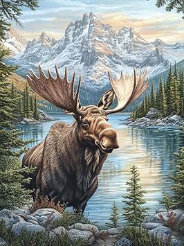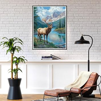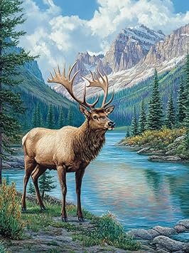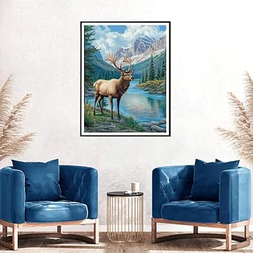 MOMAKA 5D Diamond Painting Kits Wapiti Des Montagnes, Diamant Peinture Kits Point De Croix Broderie Animal, Kits Diamant Arts Craft Cross Embroidery Pour La Décoration Murale à Domicile 30x40 cm