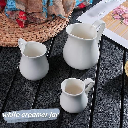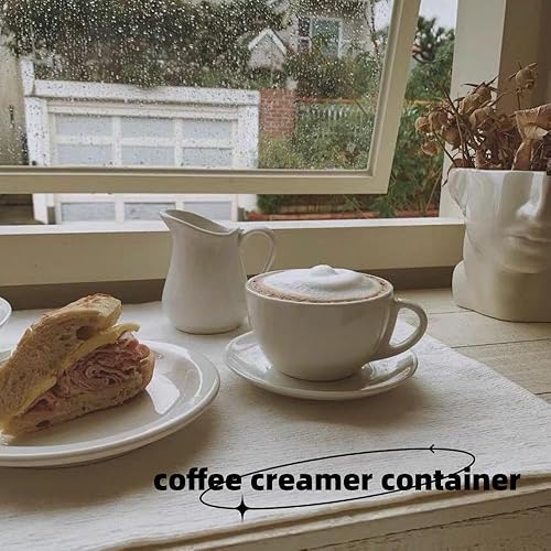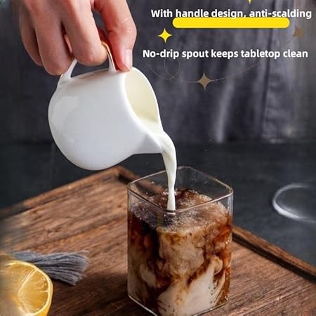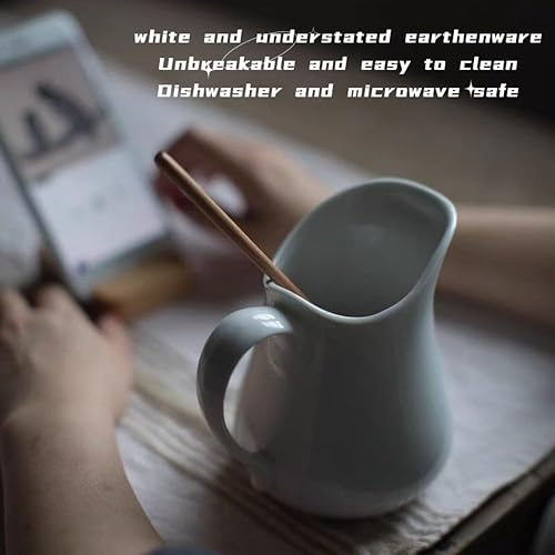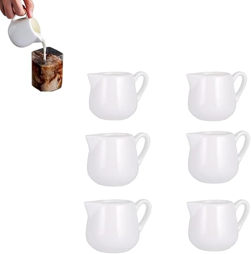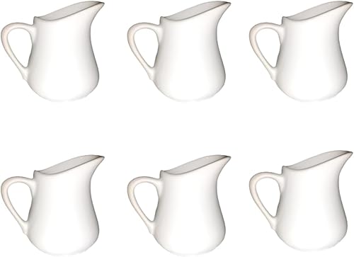 Lot de 6 petits pots à lait en céramique blanche de 80 ml avec poignée et bec verseur - Convient pour le lait, la crème et le service des sauces avec repas (6, 76,5 g)