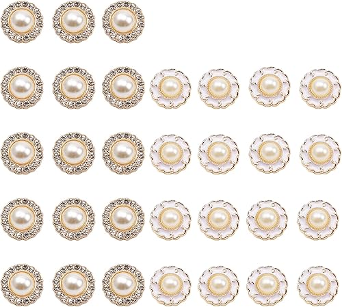 DEANKEJI Lot de 30 boutons pour cardigan - Boutons ronds en strass de 18 mm - 2 variantes de boutons rétro en perles artificielles - Pour la maison, les boutiques et les fournitures de bricolage