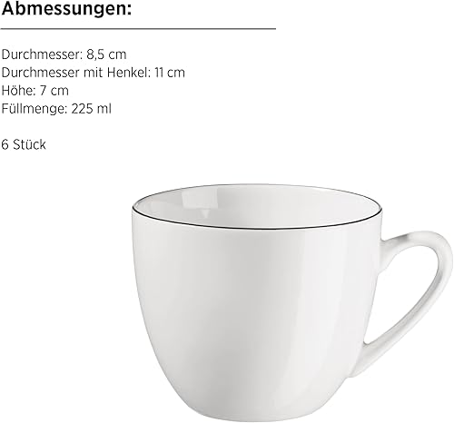 MÄSER Série Felise Service à café élégant pour 6 personnes, intemporelle, avec bord noir, porcelaine, blanc