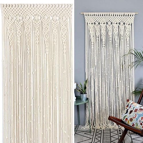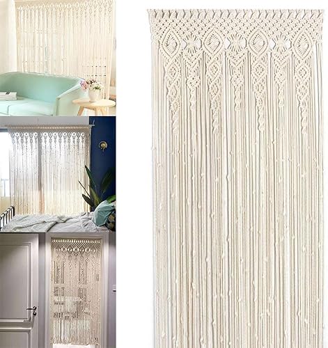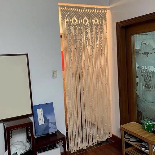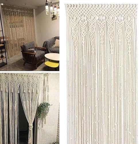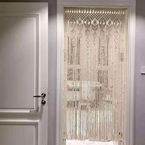 Rideau de porte bohème en coton macramé, tapisserie murale faite à la main, panneau de séparation de pièce pour salon, chambre à coucher, entrée, décoration d'arche (90 x 200 cm)