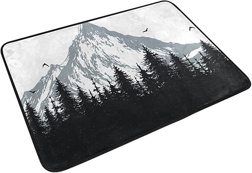 OWFKAY Paillasson bienvenue, montagne et arbre, tapis de sol pour salon, cuisine, décoration intérieure ou extérieure, 60 cm x 40 cm