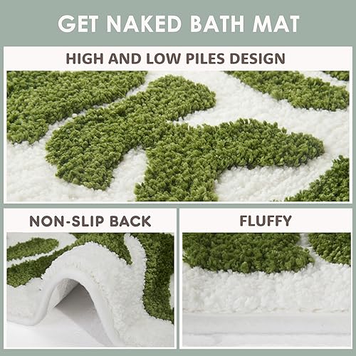 DyeFury Irregular Tapis de bain Get Naked vert - Tapis de salle de bain amusant, petite décoration de salle de bain mignonne, tapis de salle de bain antidérapant vert sauge 31 'x 18'
