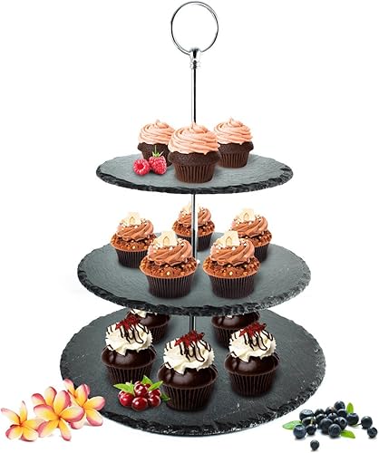 Présentoir à gâteau 3 étages, Ø 30 cm, en ardoise