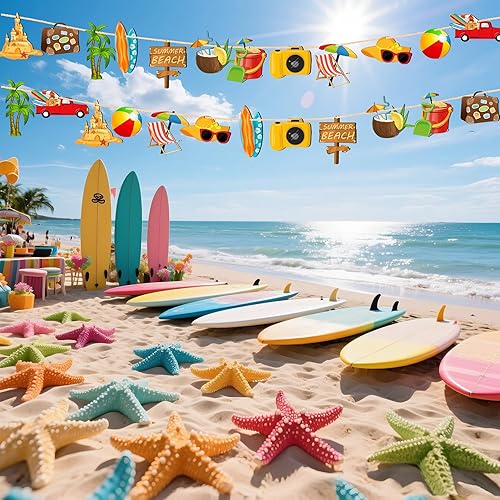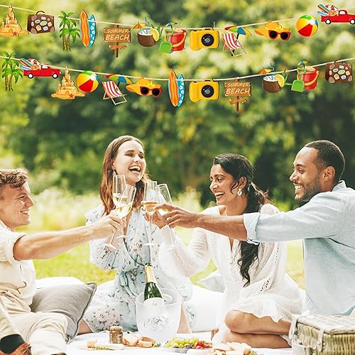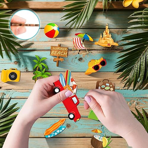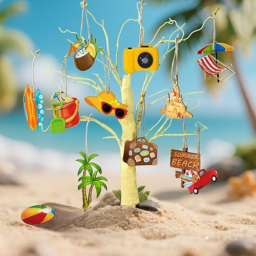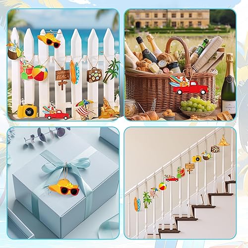 Décoration Été à Suspendre, 36 PCS Ornement Décoratif en Bois, Deco Thème Ete Suspendre Bois, Décorations D'Arbre Tropicales Hawaïennes avec Corde pour Decoration Estivale, Fête Piscine