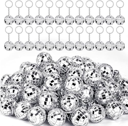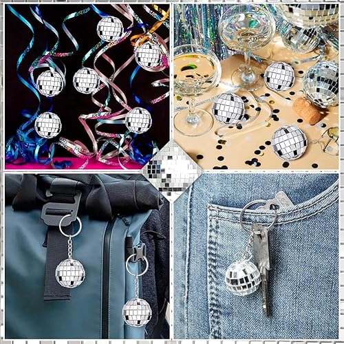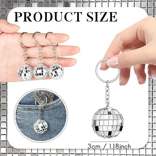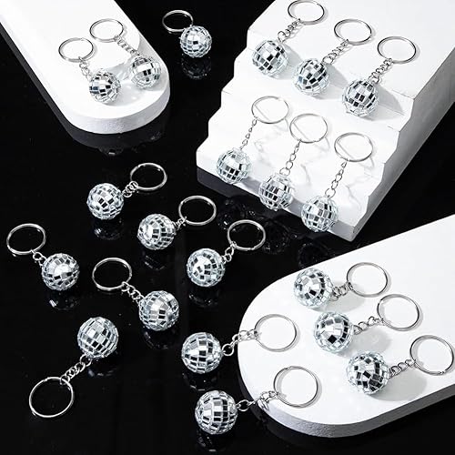 ANNJUC Lot de 50 mini porte-clés disco miroir en vrac pour fournitures disco des années 70 et 80
