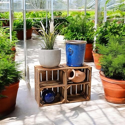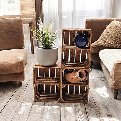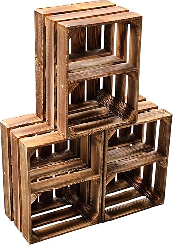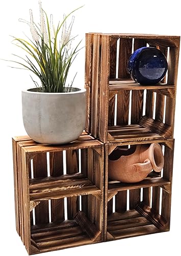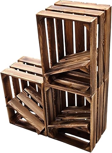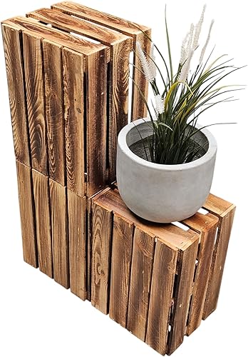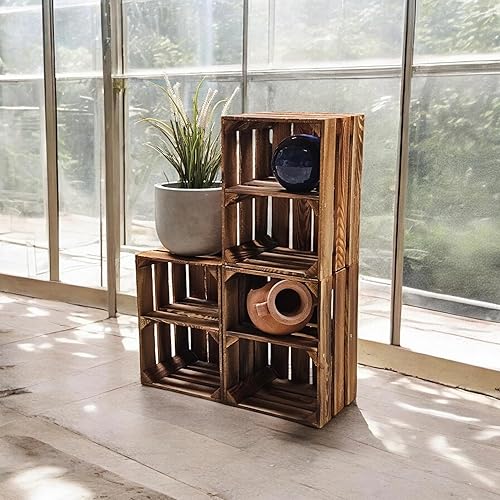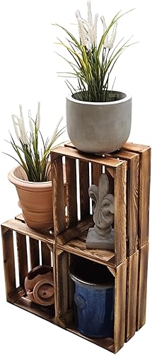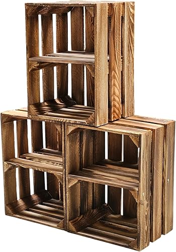 Teramico Lot de 3 caisses à vin en bois - Flammées - 40 x 30 x 25 cm - Avec étagère intermédiaire - Comme étagère et décoration (3 x cartes installées)