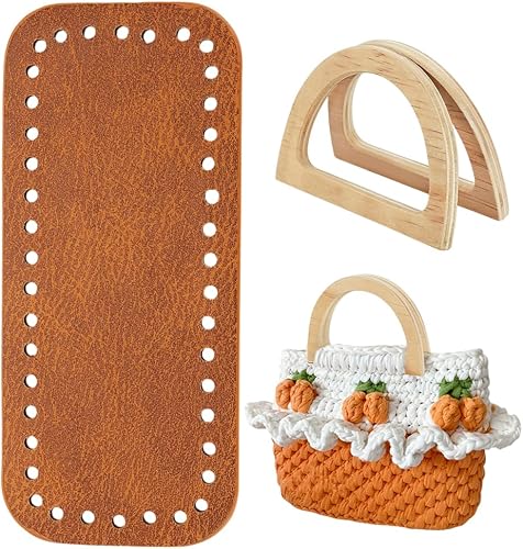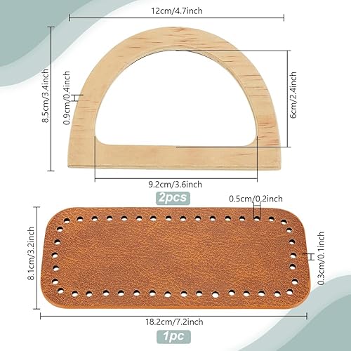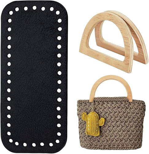 PH PandaHall Kit de Fabrication de Sacs au Crochet 18.2x8.1cm Fond de Sac en Cuir PU Marron avec 2pcs 8.5x12cm poignées en Bois en Forme de D pour Sac à Tricoter