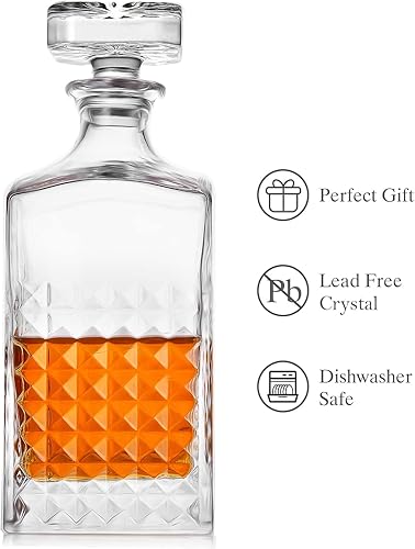 LIGHTEN LIFE Carafe à whisky en cristal de 1000 ml avec bouchon dans une boîte cadeau, carafe à bourbon, carafe à décanter sans plomb, carafe à whisky de qualité supérieure,carafe à whisky pour homme